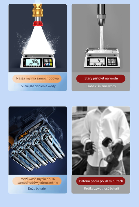 Bezprzewodowa myjka ciśnieniowa do mycia samochodów, podlewania kwiatów, nawadniania itp.