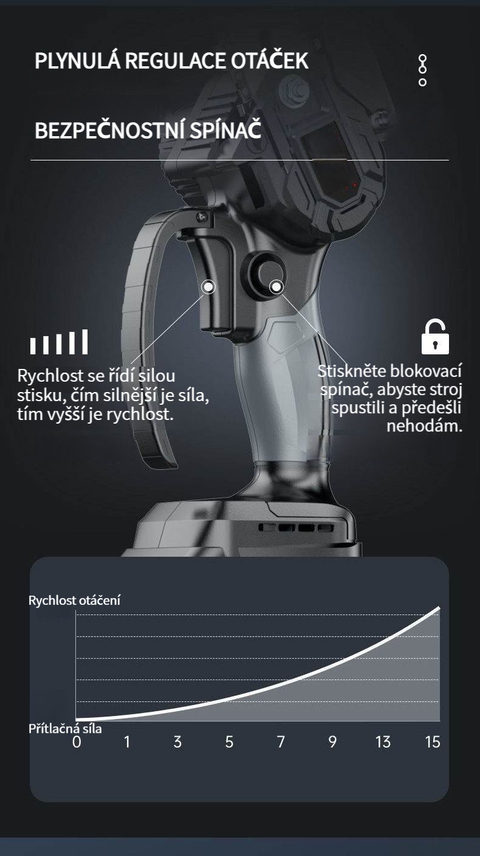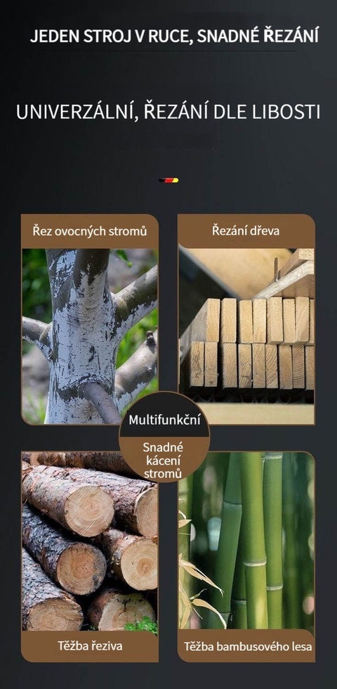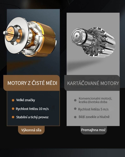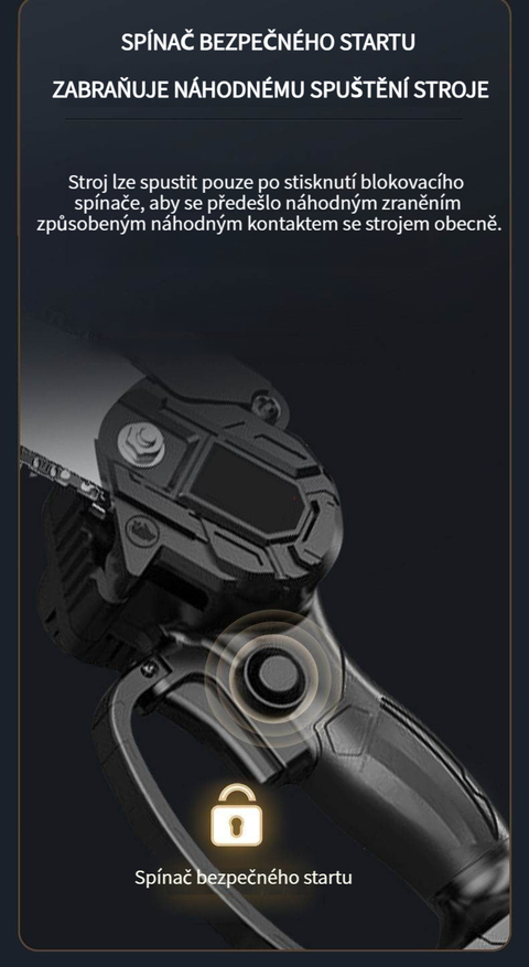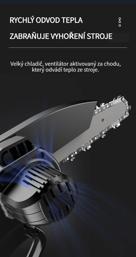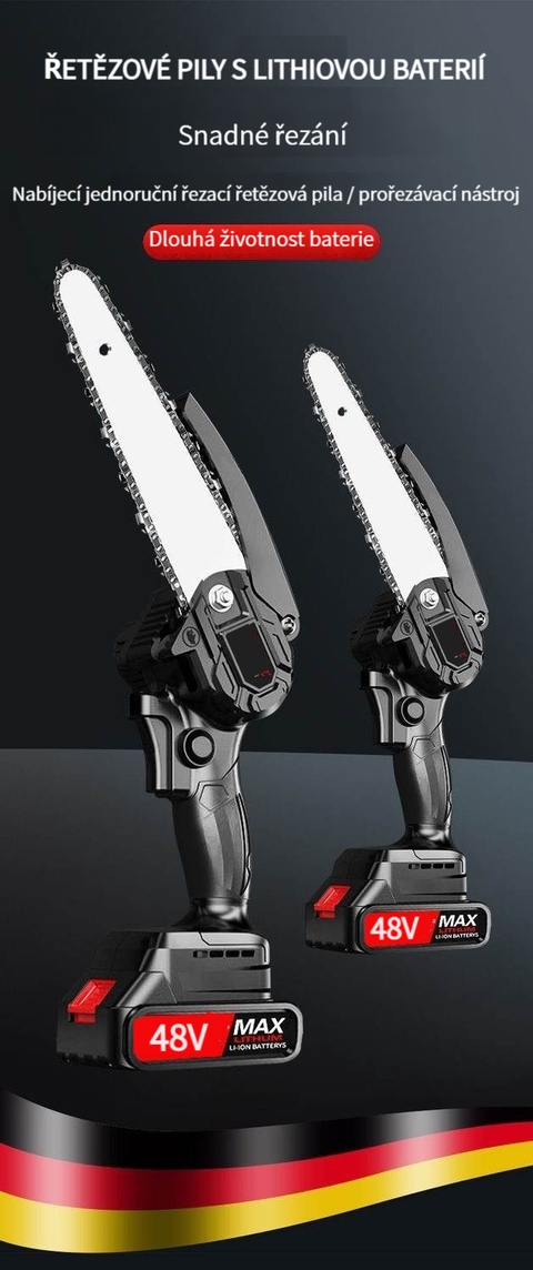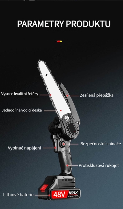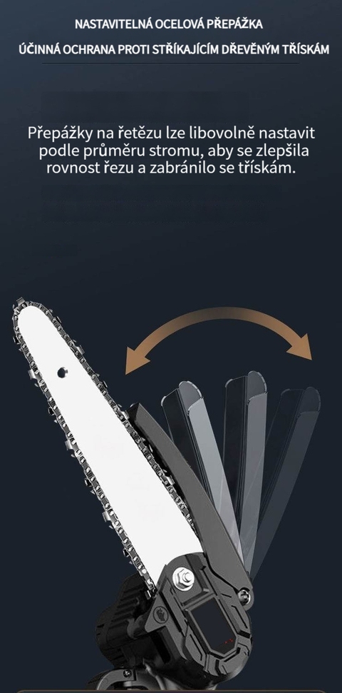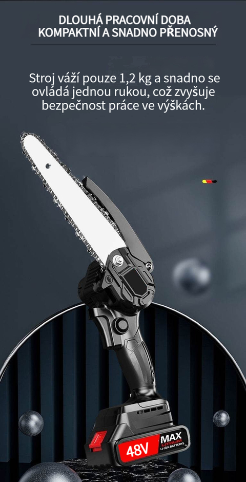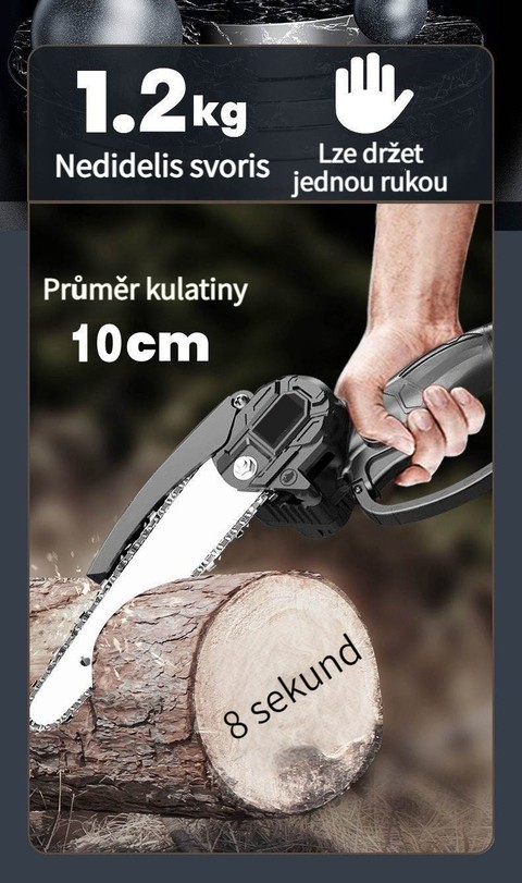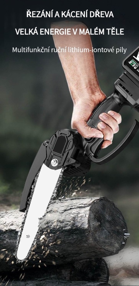 Lithiová řetězová pila, snadné přenášení a používání, vysoká řezná rychlost a dlouhá životnost baterie.
