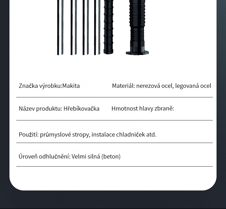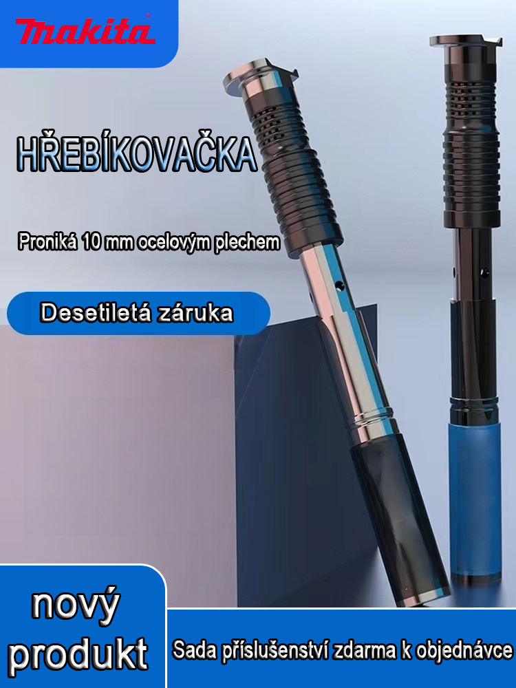 Mini hřebíkovačka, malé rozměry, nízká hmotnost, nastavitelný výkon, automatické odstraňování strusky, 200 hřebíků zdarma k objednávce